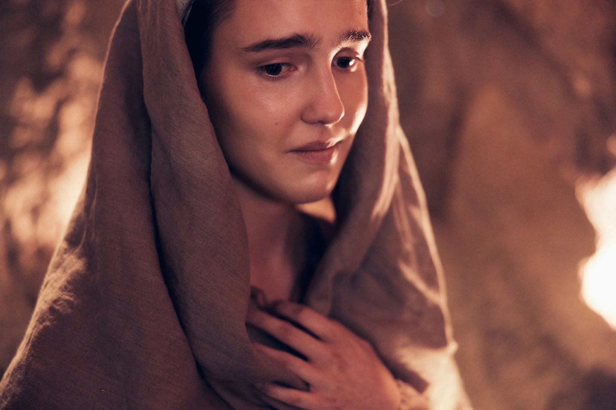 Charakteryzacja na planie odegrała kluczową rolę w oddaniu realizmu całej produkcji. Maryja została przedstawiona w okresie połogu, z odczuwalnym zmęczeniem i delikatnością, a mężczyźni niosący ciało Jezusa oraz kobieta opłakująca Zbawiciela – z ciężarem emocji i fizycznego wysiłku, który towarzyszył tej dramatycznej chwili. Twarze postaci zostały subtelnie wyeksponowane, a ich rysy odzwierciedlają wschodni wygląd charakterystyczny dla ludzi żyjących w tamtym regionie. Dzięki temu charakteryzacja współtworzy autentyczną atmosferę, pozwalając widzowi poczuć bliskość wydarzeń i ich emocjonalną głębię.